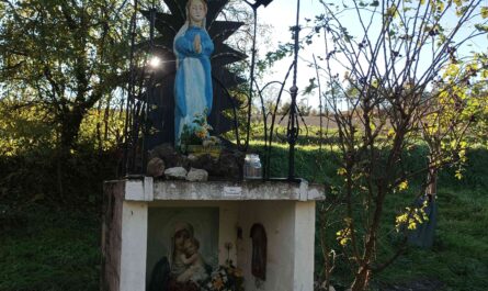 Das Schönstattmarterl am Waldfriedhof neben der Sulzwiese zeigt das Heiligtum von Schönstatt am Kahlenberg in Miniaturbauweise.